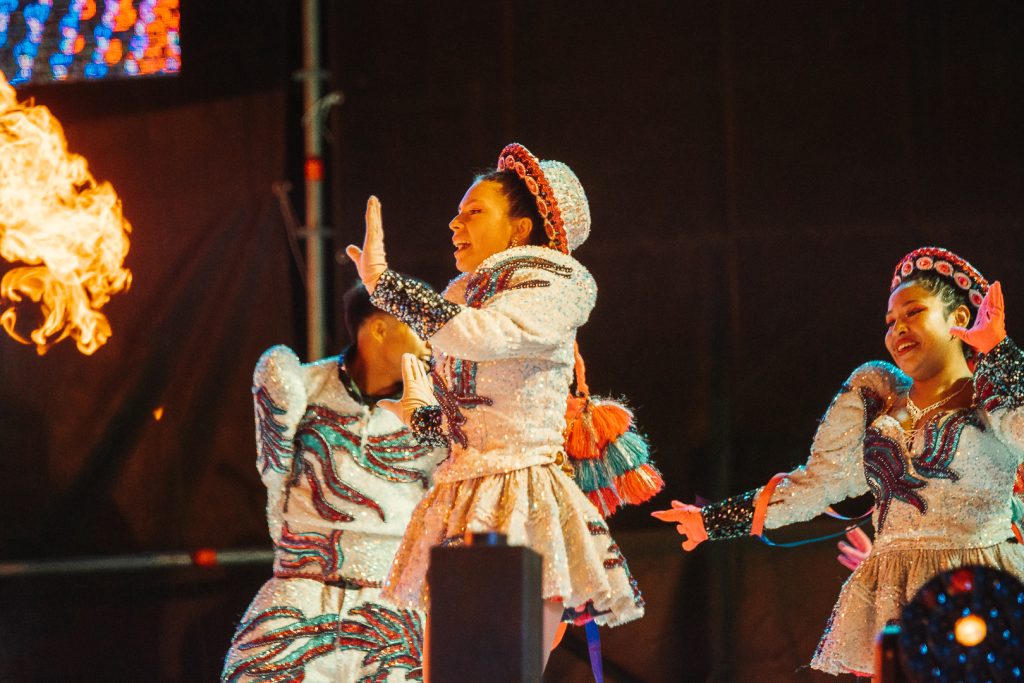 Antes de que comience el espectáculo artístico las Majestades Julieta Renzi y Celina Flores compartieron palabras de despedida en agradecimiento al año de reinado transitado y posteriormente comenzó el show que se ganó aplausos, despertó risas y emoción de los espectadores.