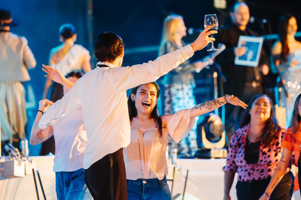 Más tarde, el evento incluyó un homenaje que unió pasado, presente y futuro de la Vendimia. Se destacó a dos Reinas tupungatinas que cumplieron bodas de oro y plata de haber finalizado sus mandatos; 50 años en el caso de Amelia Dean y 25 en el de Soledad Nebot, ambas recibieron obsequios, la banda de reina y formaron parte de un video del que participaron junto a la Reina de la vendimia 2025 Julieta Renzi. Luego de ese momento cargado de memoria y afecto, las candidatas distritales 2026 protagonizaron un cuadro especialmente pensado para la ocasión: bailaron un aire de zamba -acompañadas por bailarines folklóricos- que sintetizó el espíritu de la Vendimia tupungatina en su letra que habla de la identidad del departamento, la montaña, el trabajo de la tierra y el orgullo vendimial, con versos que resonaron en el Teatro: “Desde la montaña viene la canción, brilla Tupungato con todo su sol… Reinas del vino, vino de altura, mirador de estrellas, luz que perdura”.