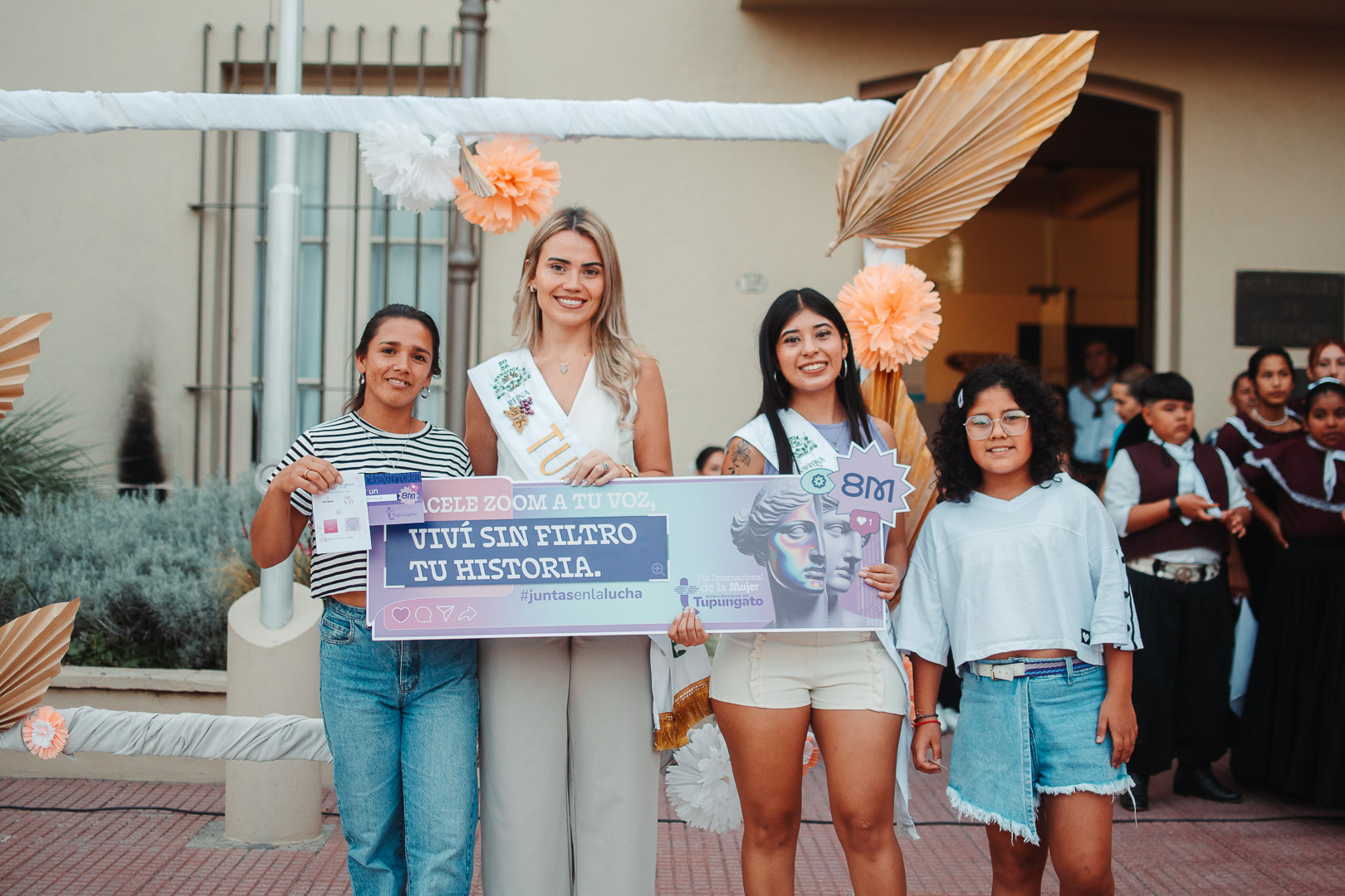 Tras haber sido reprogramado por las inclemencias climáticas el 8M pudo realizarse en la Explanada Municipal -que era la locación prevista- con amplia participación y concurrencia de vecinas, vecinos y familias. Comerciantes y emprendedores se sumaron colaborando con premios para regalar así como el Aero Club Tupungato que hizo sobrevolar tres aviones sobre el cielo lanzando globos rosados al aire que en su interior llevaban obsequios sorpresas.